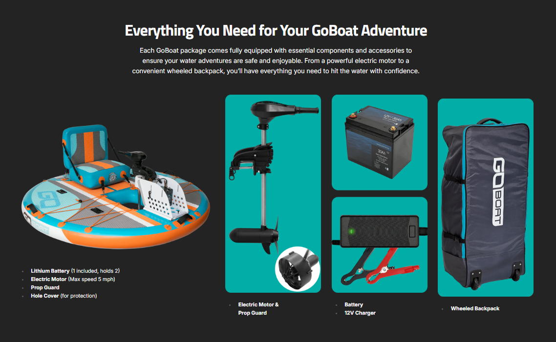 Enjoy the tranquility of a gorgeous sunset all day long with our 2-person GoBoat that features our amazing tropical “Sunset” color scheme. This GoBoat is designed for two people to sit comfortably side-by-side thanks to the extra-wide bubble seat and enjoy the enhanced stability afforded by the elongated deck. Made of durable Armorlite material, this inflatable watercraft is ideal for cruising, fishing or family fun. The 5-speed electric motor moves you right along; the craft is easy to maneuver and easy to transport. Customize your GoBoat with a variety of attachments. When your adventure ends, simply deflate and store it in your trunk or closet. Suitable for fresh and saltwater, the 2-person GoBoat is your ticket to endless aquatic adventures.