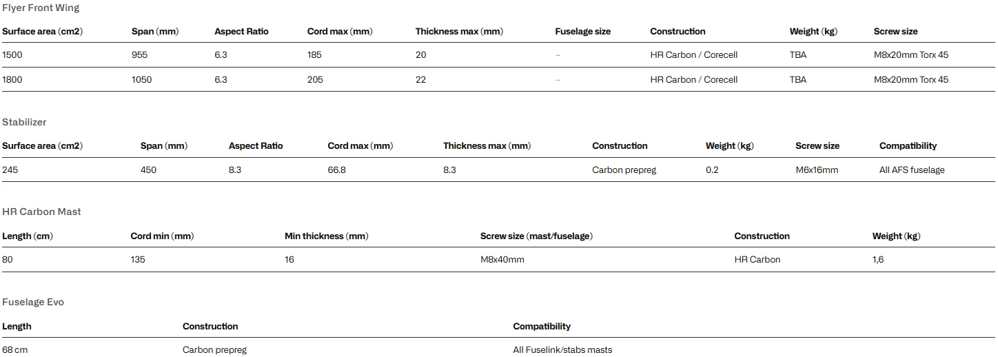 The Flyer foil is designed to accompany your first wing flights. Its smooth takeoff, stability, control, and predictable nature make it the ideal foil for learning to fly with ease. 100% carbon.