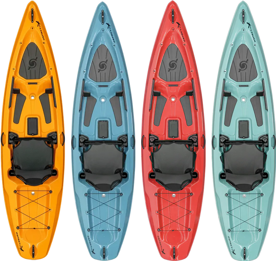 It also features bow hooks so you can add an Osprey "Dream Weaver" Bow Cover and has an elevated frame seat with Camlock Security knobs to keep the seat securely attached while in use. Our gasketed H-Pod storage bucket sits just in front of the seat so you have a handy spot for your phone or other small items. The Osprey 109 also comes with four super comfy logo handles (bow, stern, port and starboard) so solo carrying this little beauty is super easy. Reinforced center scuppers drain the foot-well and tank-well, and scupper plugs are available if desired. Check out the new Osprey 109 at your local dealer and experience lightweight SOT paddling at its finest.
