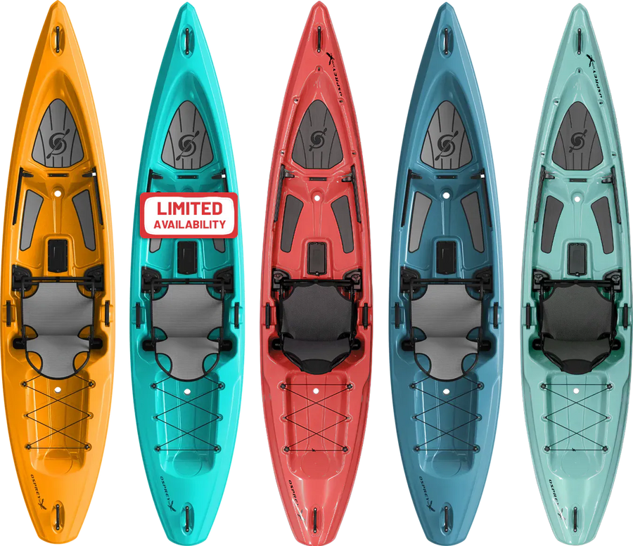 The OSPREY also boasts water bottle rests behind the seat and room for large soft sided coolers in the tankwell, and our new H-pod gives you a handy gasketed storage spot in front of the seat for smaller items you want to keep close at hand. A 4-inch gear track in the cockpit is a great spot for your Go-Pro or other accessory, while reinforced center scuppers drain from the footwell and tank well to maximize your on-water fun. Check out the OSPREY 120 and experience lightweight paddling at its finest.