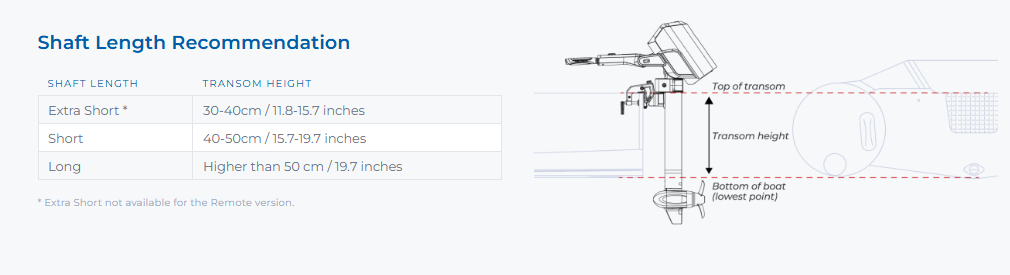 | Motor Weight* (including bracket) | Extra Short: 12.6 kg Short: 12.8 kg Long: 13.1 kg |