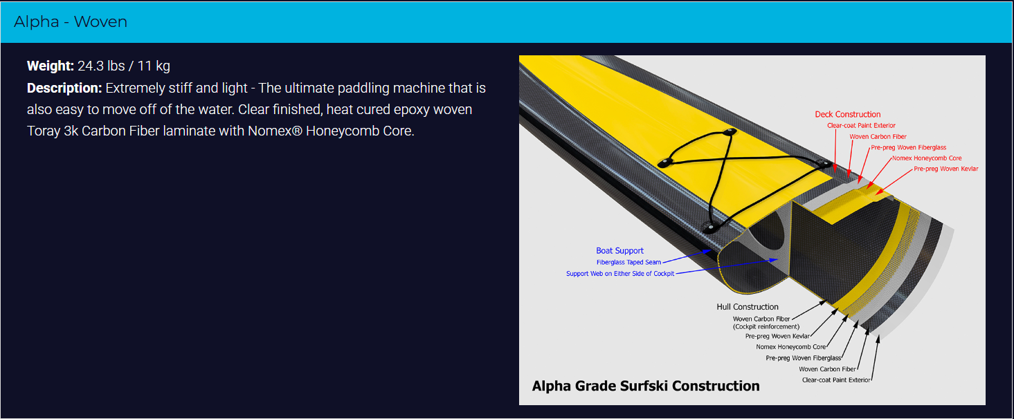 The S18S X uses the S18S G2 platform and reduces weight and price by eliminating hatches. With its fast hull shape and narrow catch, the light weight of the S18S X can give you the edge in your next race. The rocker profile is optimized for efficient paddling and catching waves. All done without losing any stability and staying within USCA fast sea kayaks regulations. The DeBrito bailer makes for dry starts, paddles and rapid water removal. Under-stern/over-stern fittings, side handles, water bottle holder, carbon handles at each end, leash attachment and deck bungees still come standard on the Stellar S18S X. Making this a boat you need to put in your fleet.