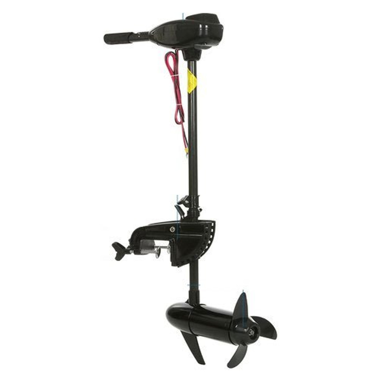 This electric motor system weighs only 18 lbs alone and easily swings up and out of the way in skinny water. The motor features 55 lbs of thrust and 5 forward and 3 reverse speed settings. This motor has a 30 inch shaft with a long tiller for easy reach and a 9-inch high efficiency propeller. The recommended battery size for this motor is a 50-75 amp hour lithium or sealed lead acid unit for safety.